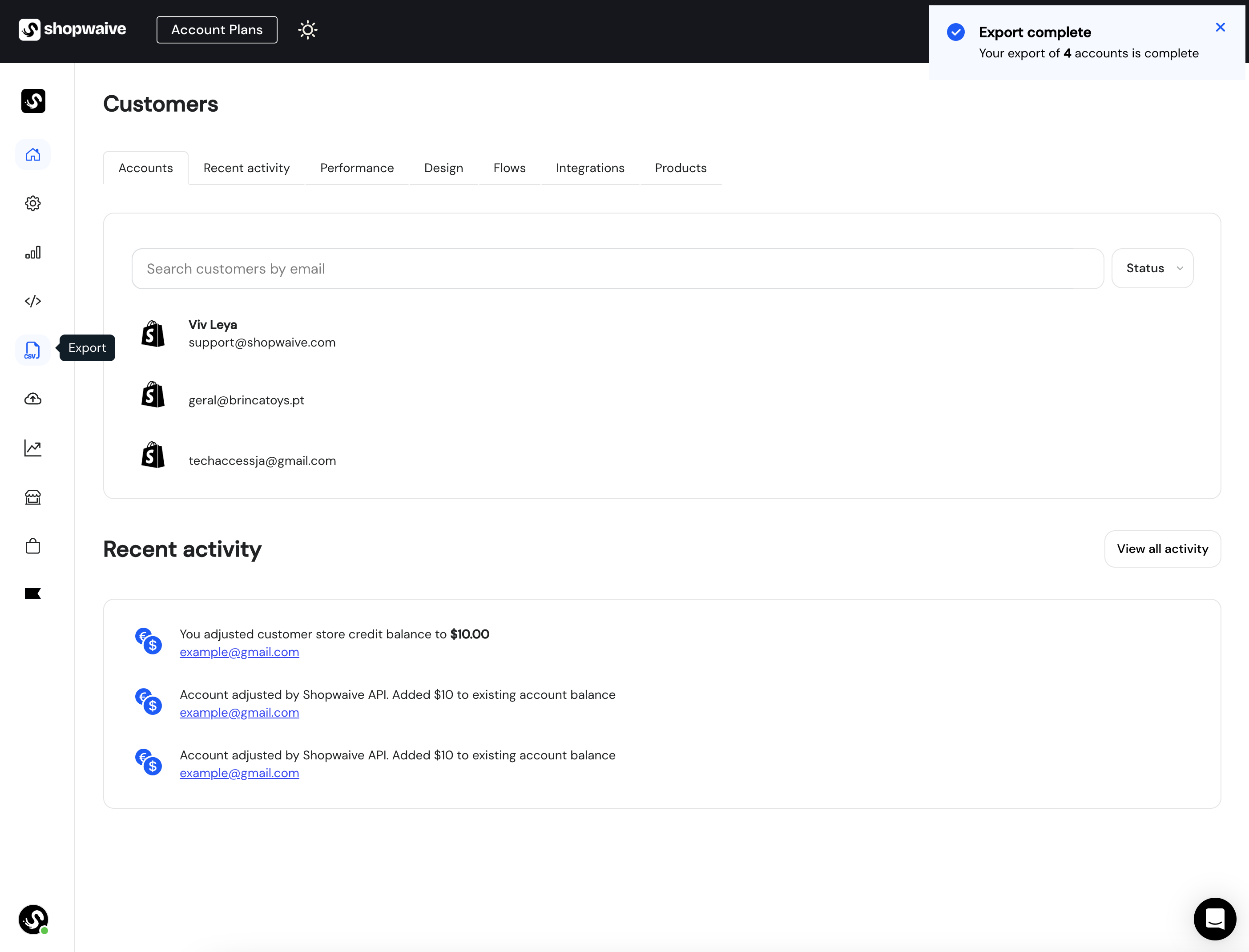 Export accounts