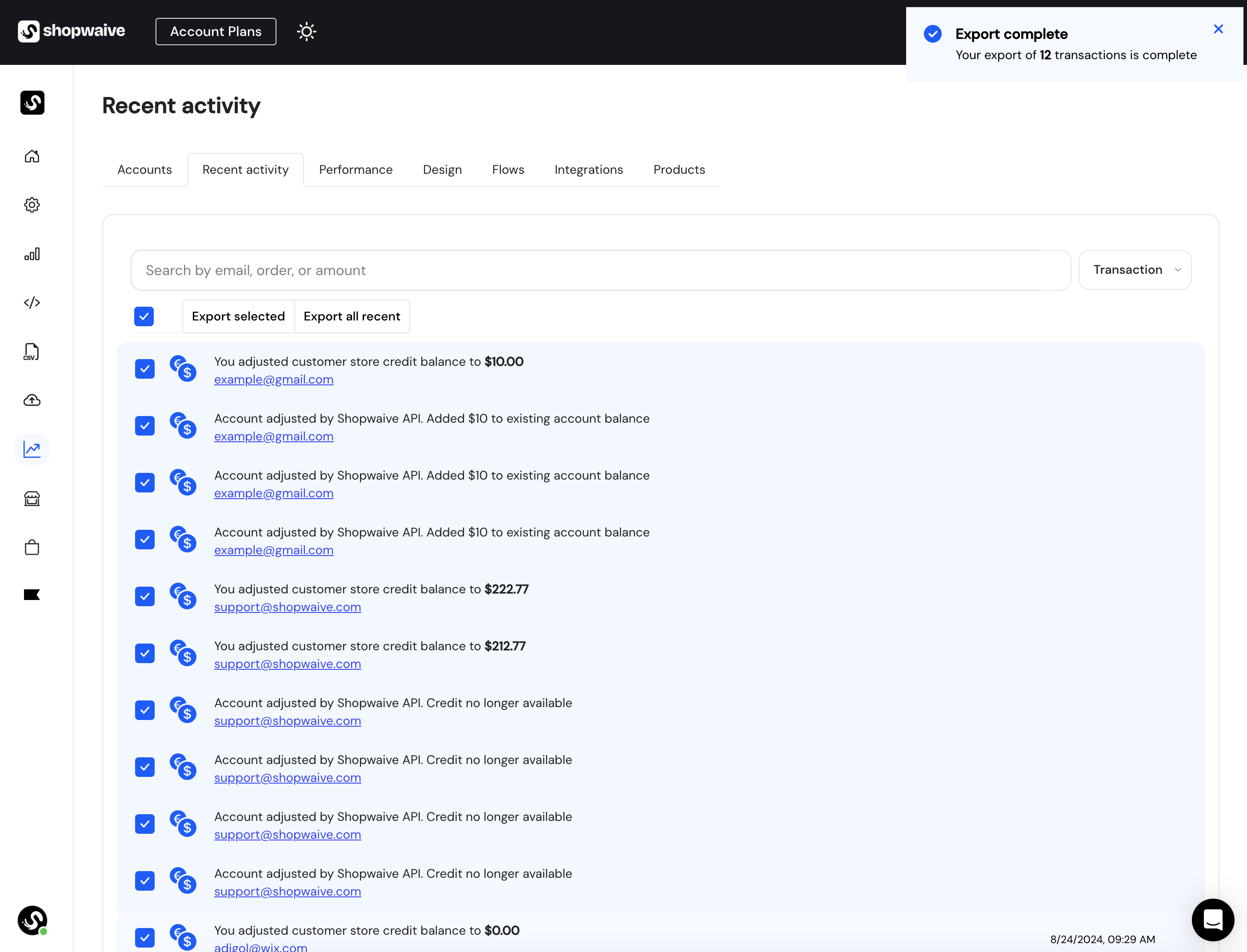 Export customer transactions